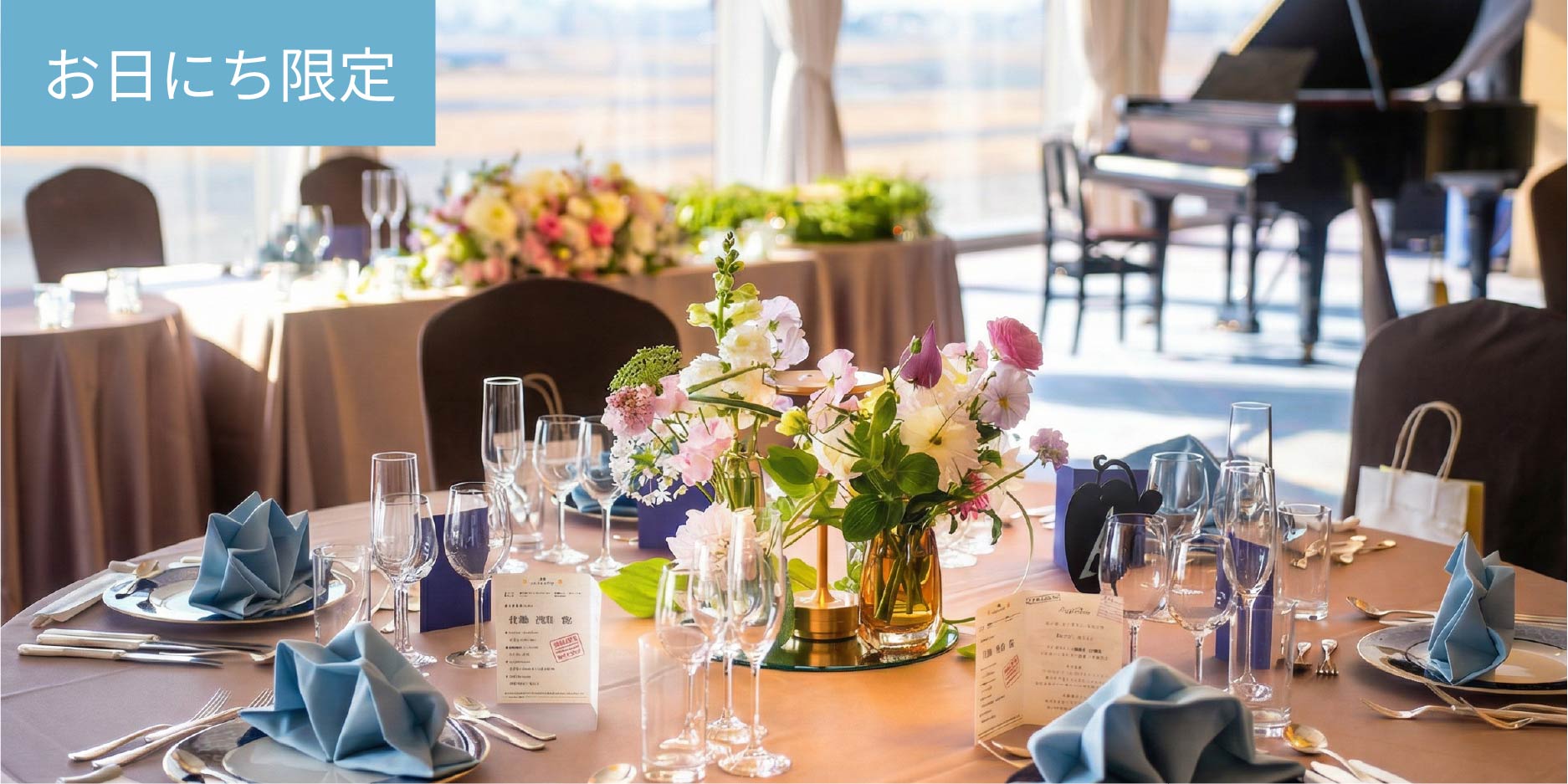 日本一の離発着数を誇る滑走路を見下ろすこの場所は、世界にひとつだけのウェディングステージ。空港という“旅立ちの象徴”が生み出す驚きと感動の演出が、誰も経験したことのない特別な一日を紡ぎます。大切な人たちに囲まれ、未来へと続く幸せの瞬間を。
