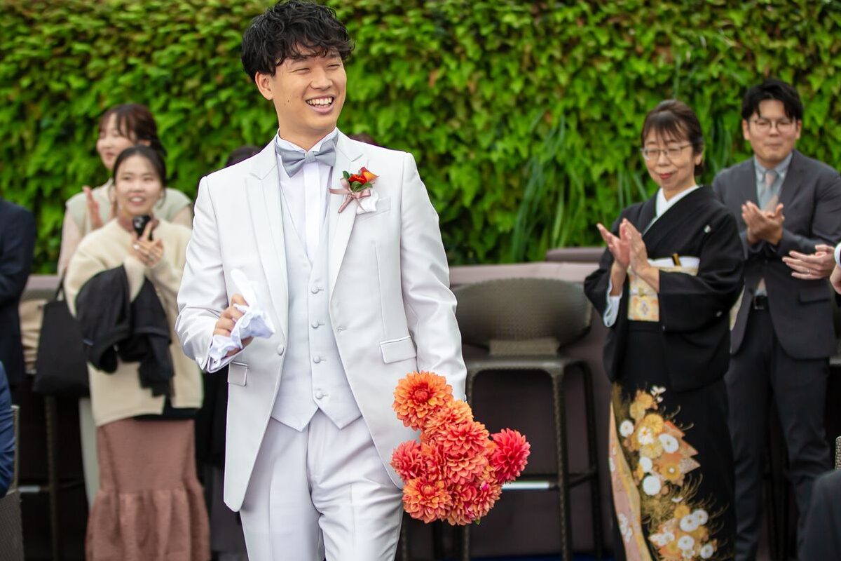 大きく手を挙げながら爽やかな笑顔で登場された新郎様