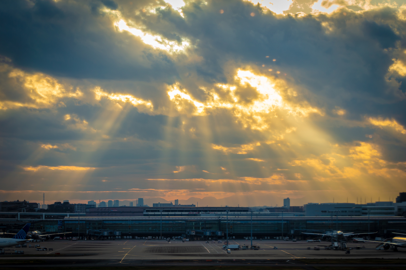 夕陽と飛行機に想いを馳せて。