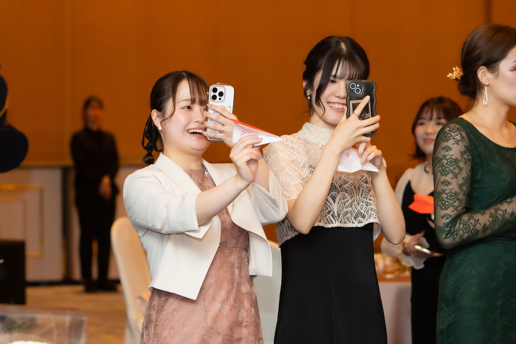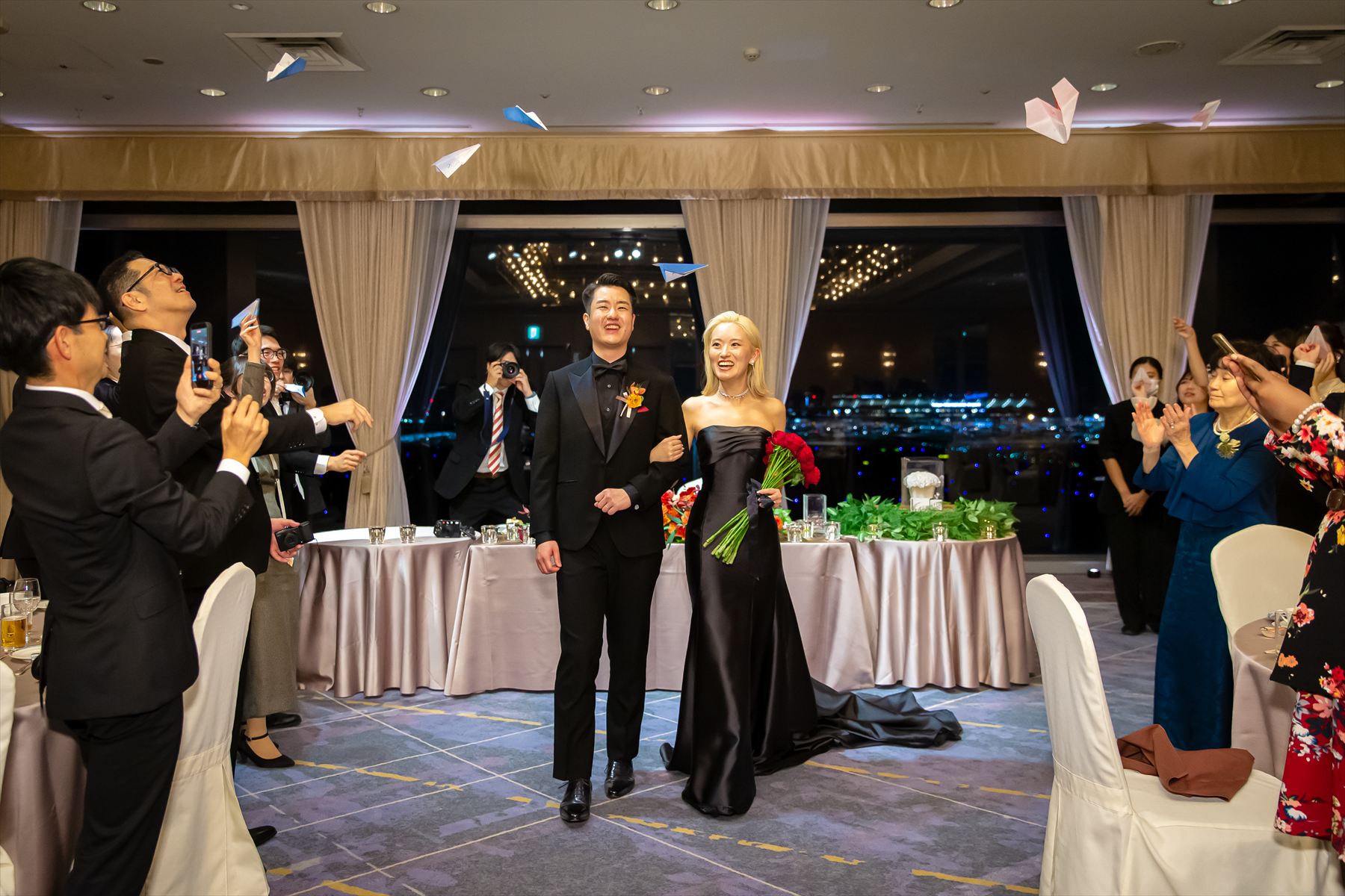 ゲストの歓声と飛行機のシャワーが降り注ぎます