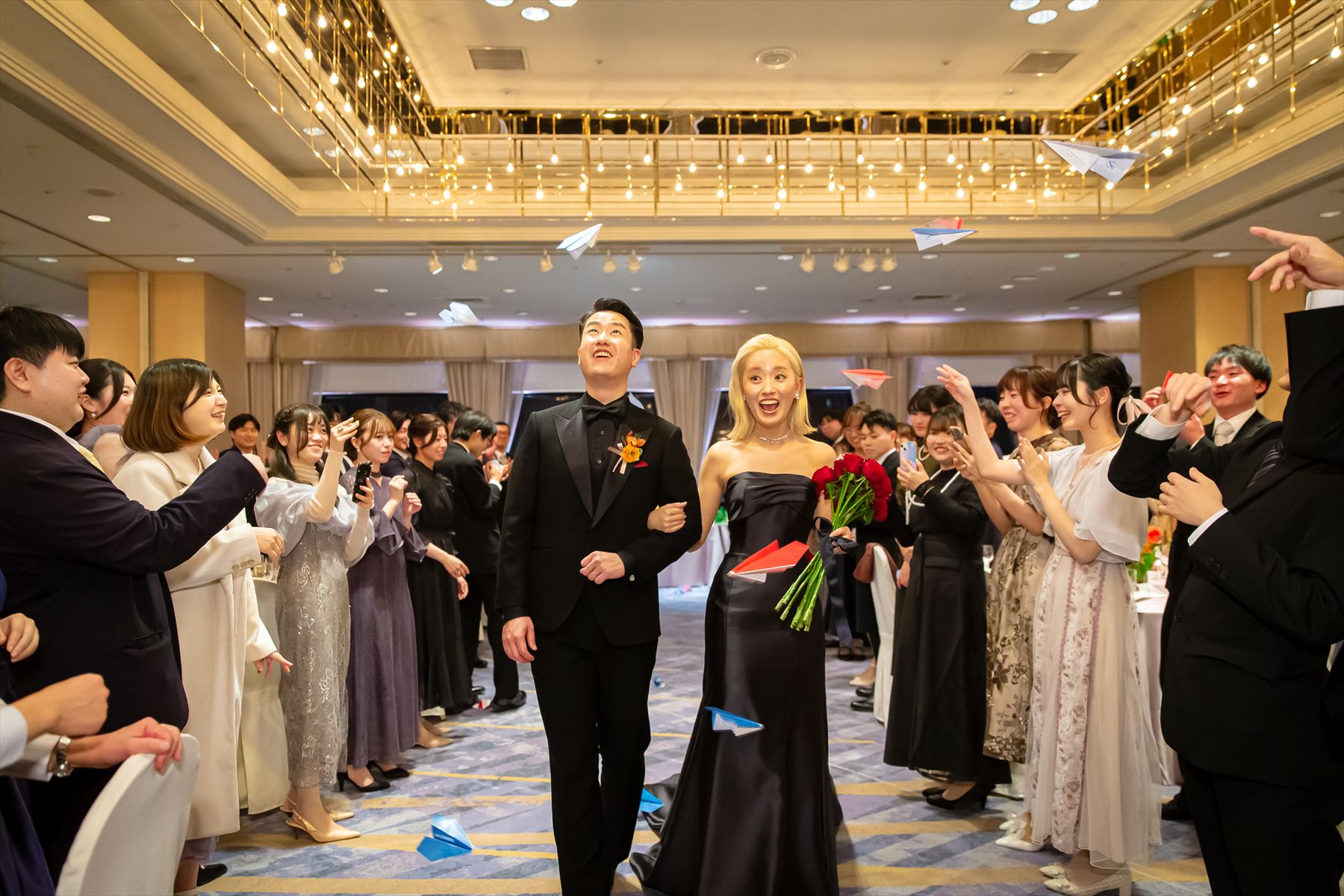 挙式の退場や、ラストの披露宴の退場シーンで飛ばすのもお勧めです♪