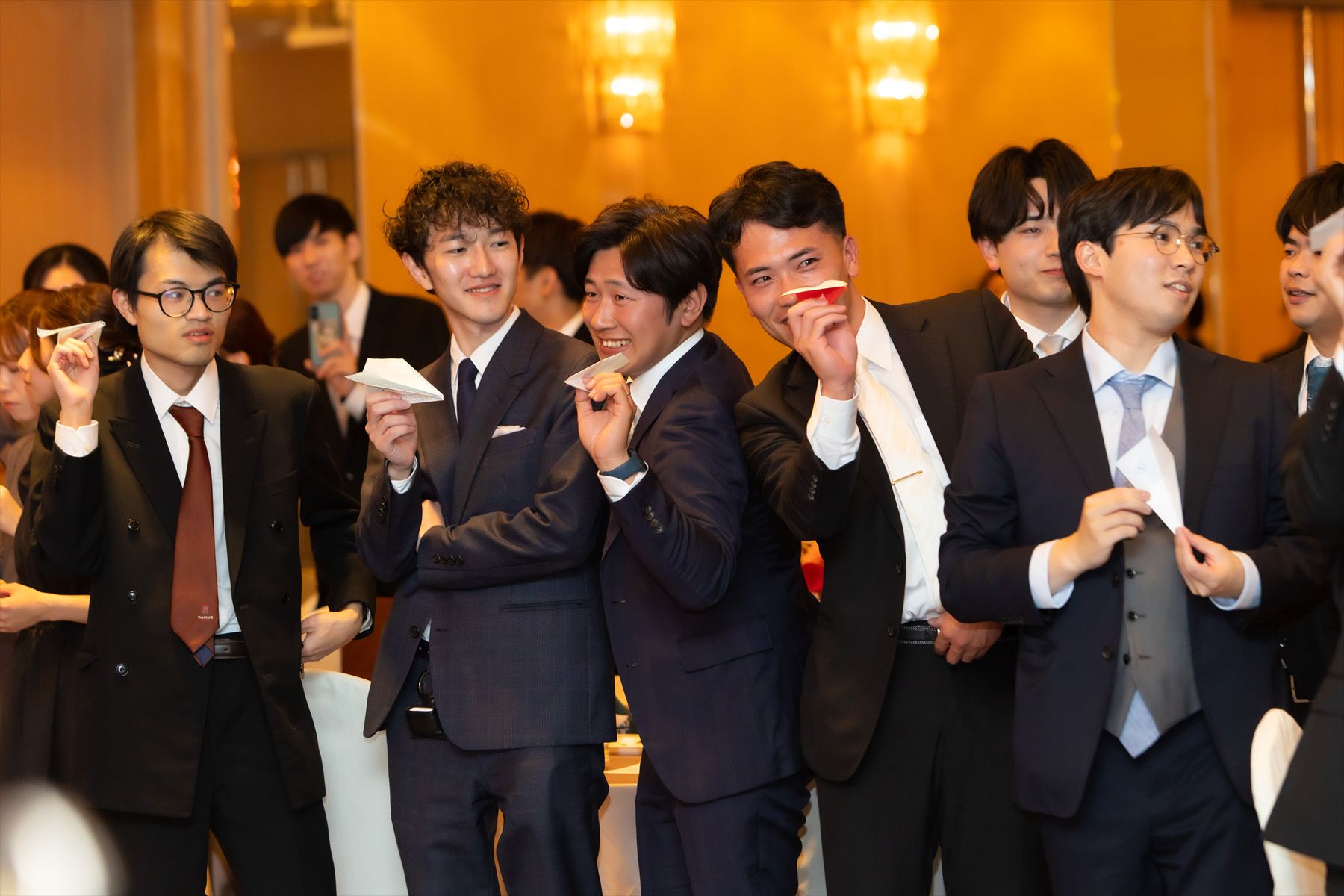 新郎新婦に飛ばしていただく紙飛行機を作成いただいています