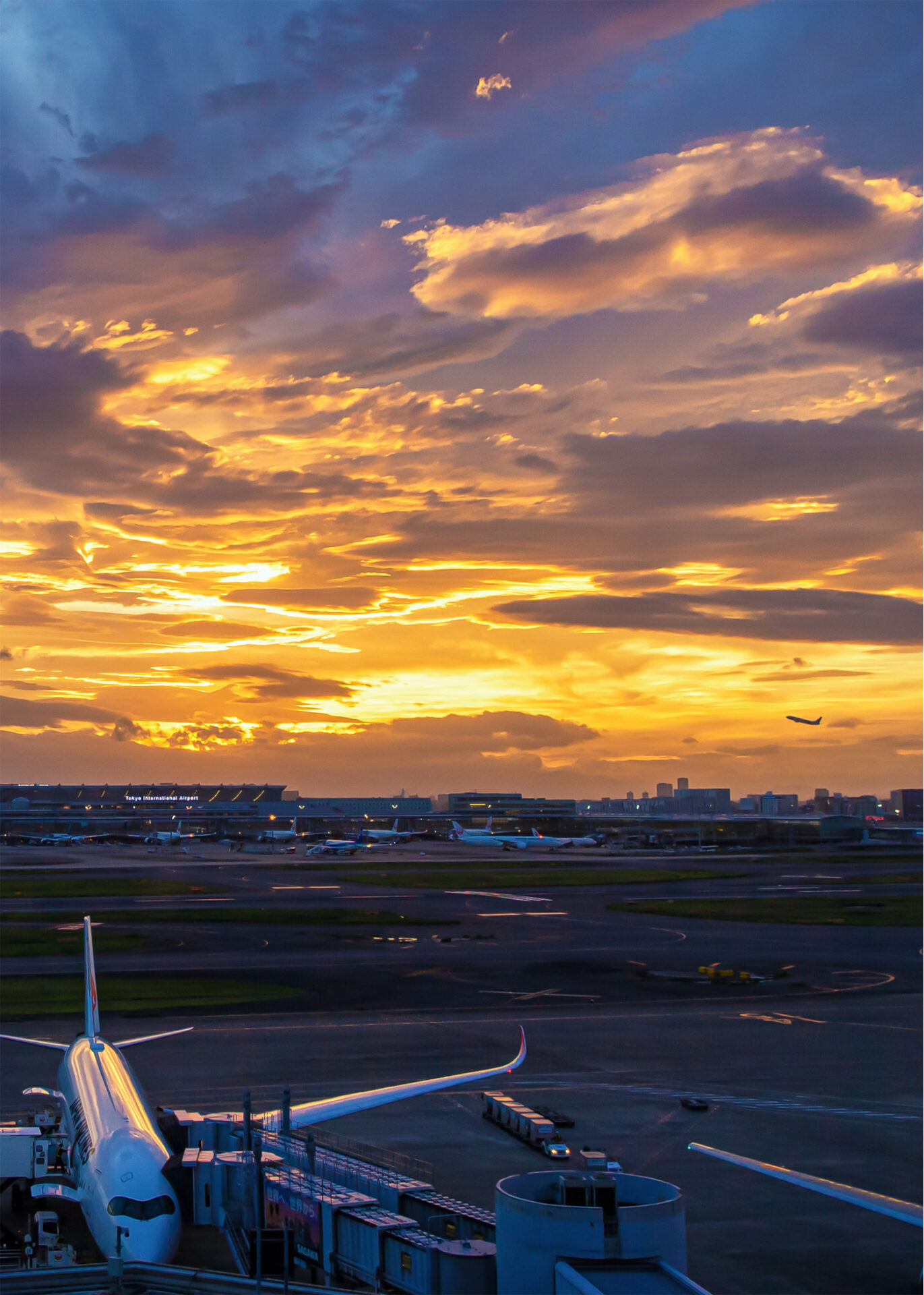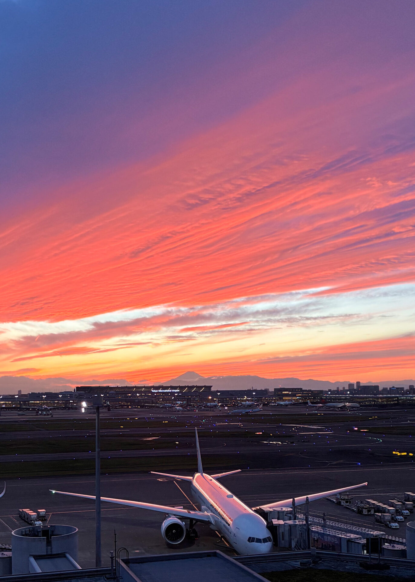 「わっすごい!!」と言いながら、急いでカメラを探し出すゲスト。 30mの大窓から見えてきたのは、滑走路から飛び立つ飛行機、国際線の第三ターミナル、富士山。
